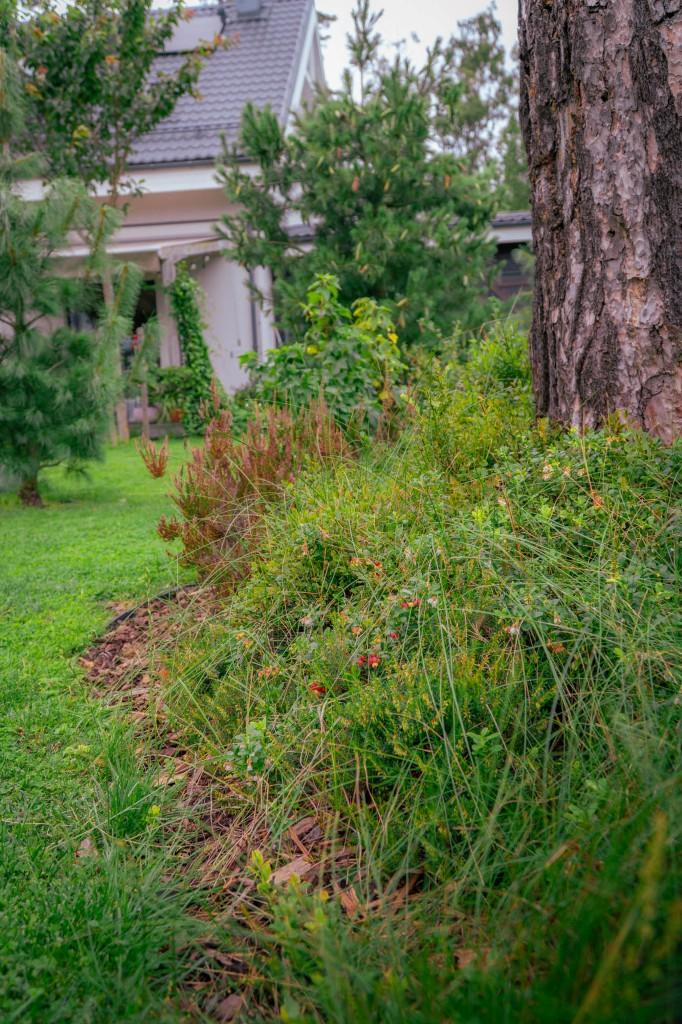 Dārzā apzināti veidots meža stūrītis, kas piešķir teritorijai raksturu un sasaista to ar apkārtējo ainavu. Šajā zonā ieaudzētas brūklenes un iestādītas krūmmellenes, radot gan dekoratīvu, gan praktisku vērtību. Cauri meža daļai izveidota gājēju taciņa, kas ļauj brīvi pārvietoties un baudīt dārza augļus, vienlaikus saglabājot dabisku noskaņu.