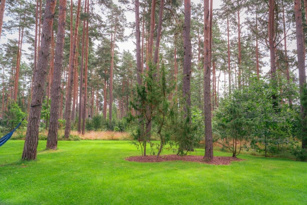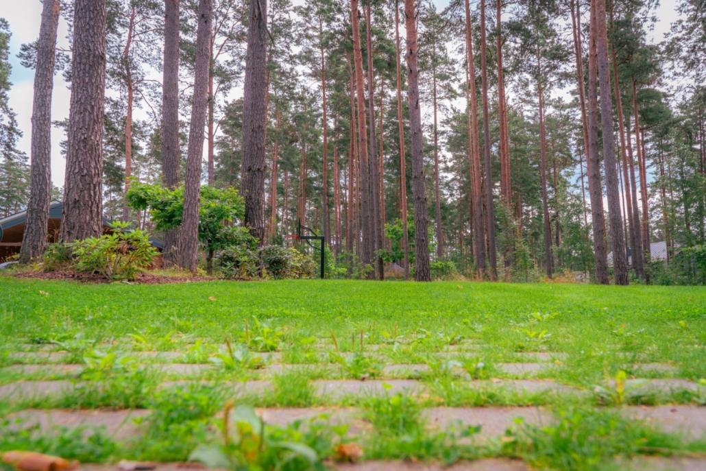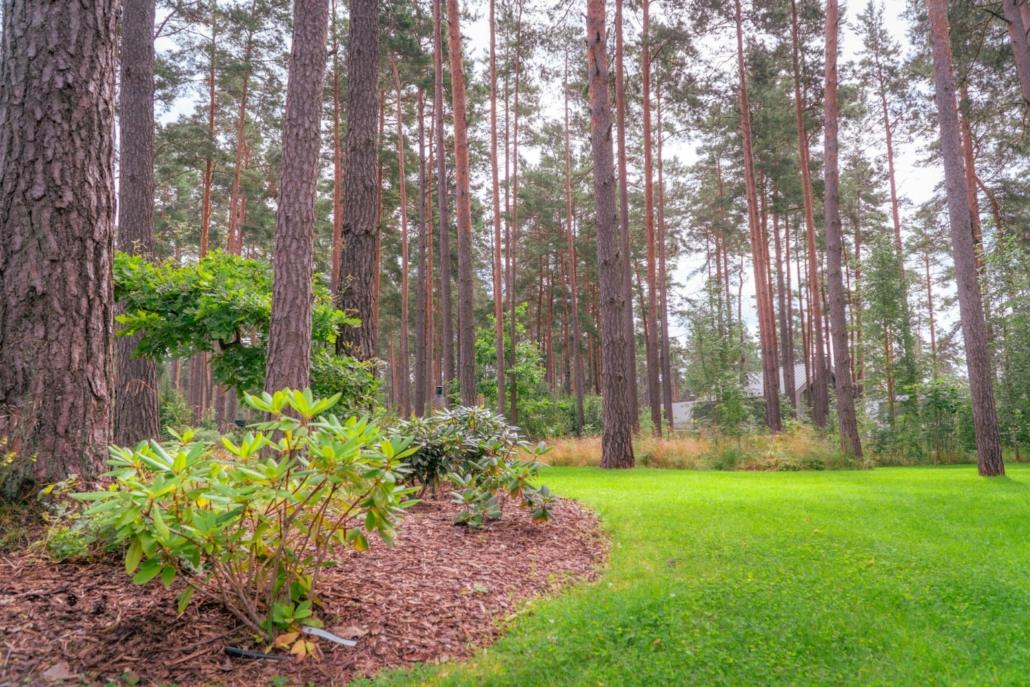 Dārzā apzināti saglabāta dabiskā zemsedze, kas pakāpeniski un organiski pāriet intensīvi koptā zālienā. Šāda pāreja nodrošina gan vizuālu estētiku, gan funkcionālu zonējumu, ļaujot ainavai izskatīties nepiespiesti, kopti un dabiski. Mākslīgi veidotu stādījumu šajā teritorijā ir minimāli, dodot priekšroku esošajai veģetācijai un dabiskajam augu klājumam.