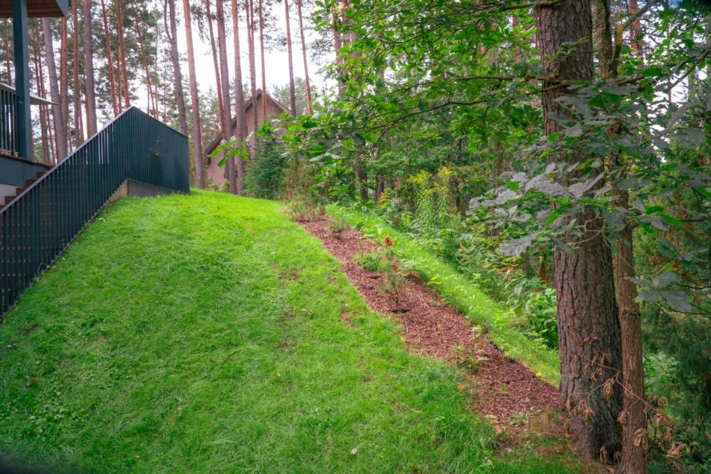 Tāpēc izvēlēts ilgtspējīgs risinājums – saglabāt dabisko raksturu, samazināt iejaukšanos ainavā un radīt privātu dārzu, kas prasa minimālu kopšanu, vienlaikus nodrošinot vizuālu kvalitāti, funkcionālu lietojumu un cieņu pret apkārtējo vidi.